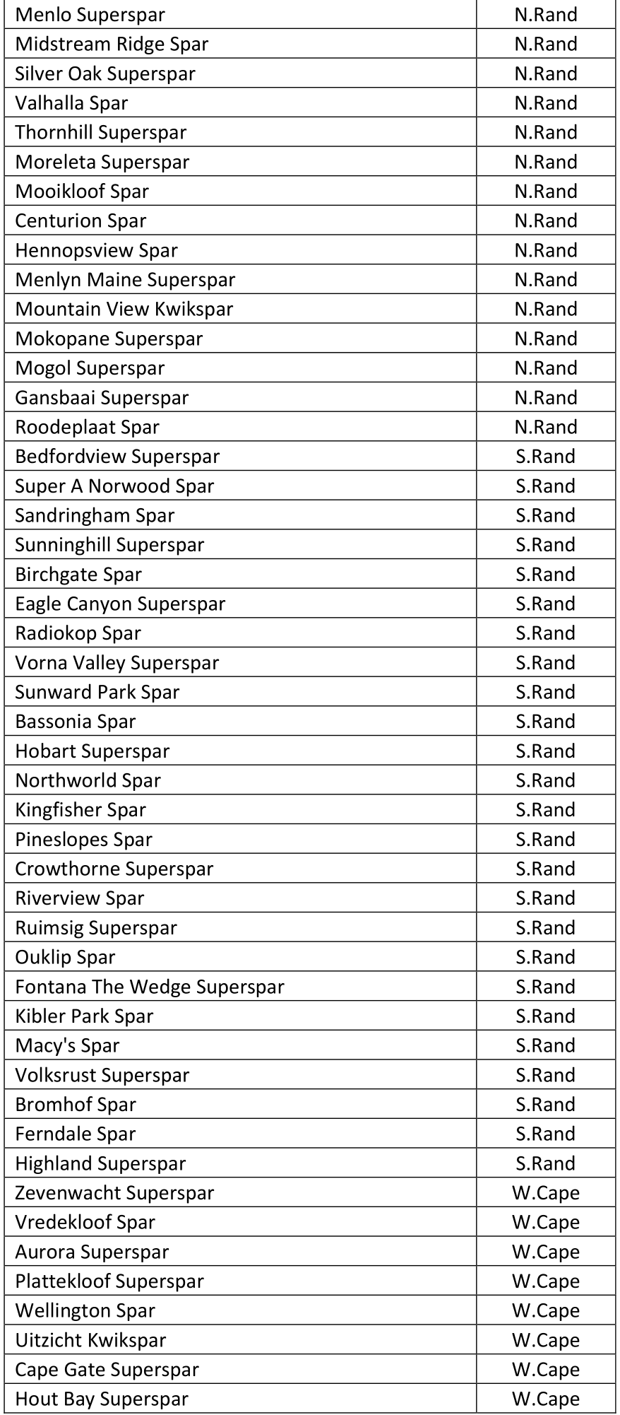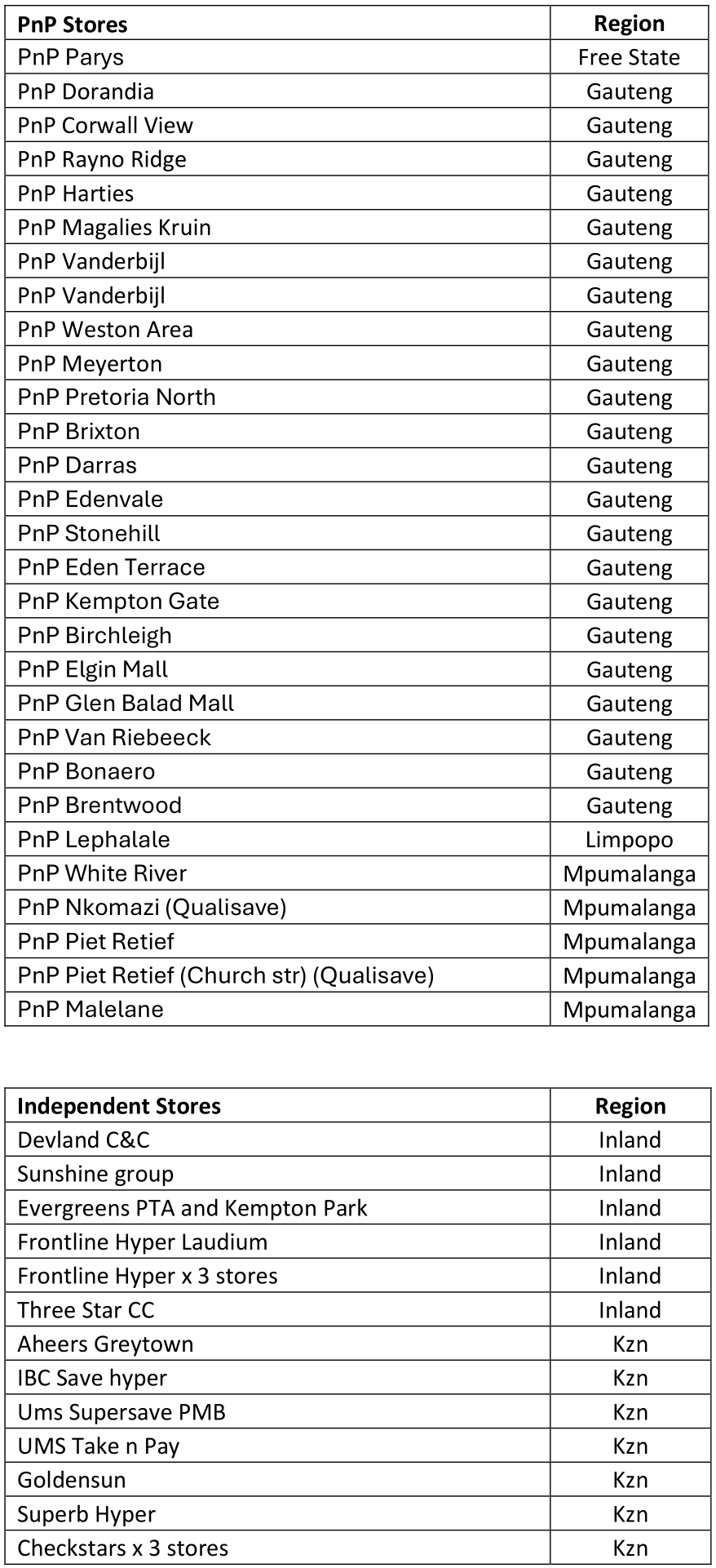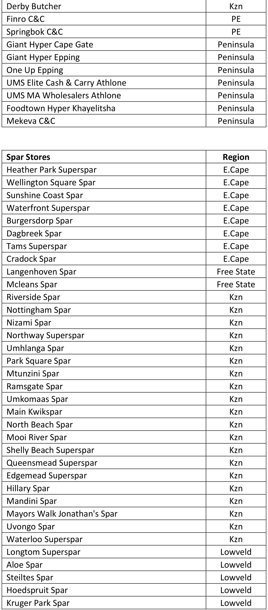 Annexture B – Participating Stores