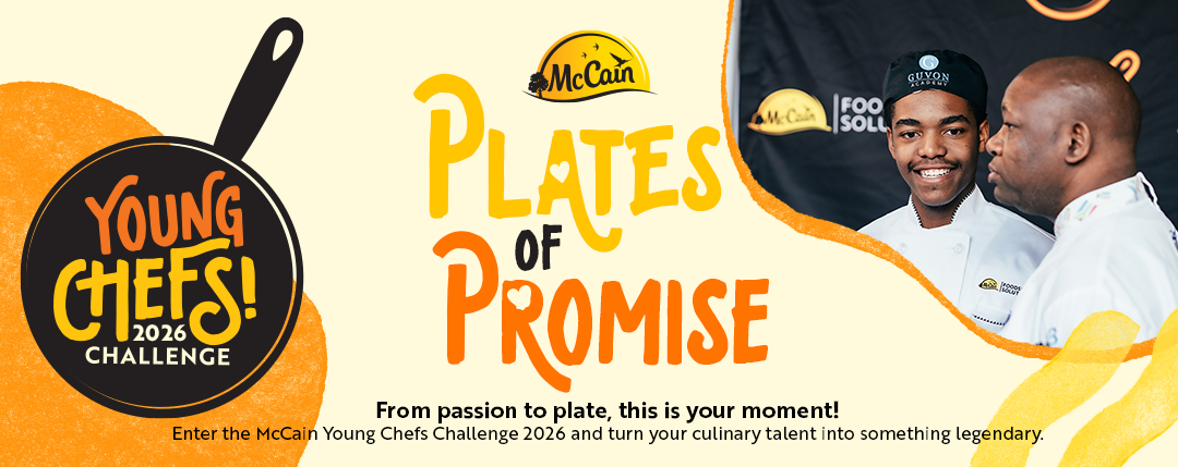Plates of Promise, Young Chefs Initiative Competition. McCain Invests R250K in Plates of Promise, Young Chefs 2026 Initiative to get Youths Engaged in Culinary industry and weekly cash prizes for unique entries.